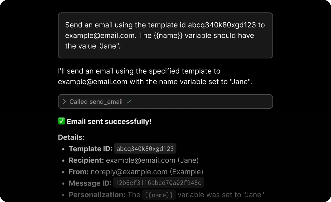Sign up now to try out the MCP and start sending in seconds. Subscribe to a free Hobby plan and get 3,000 emails/month.