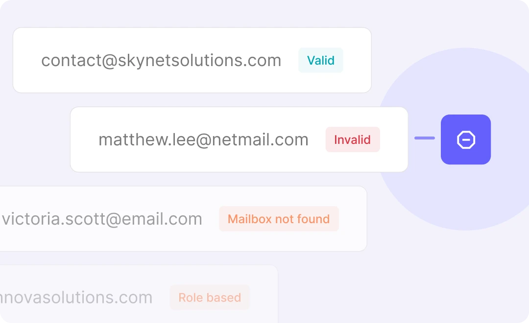 Upload your recipient email list to identify invalid email addresses, suppress them in a single click, and safeguard your deliverability.