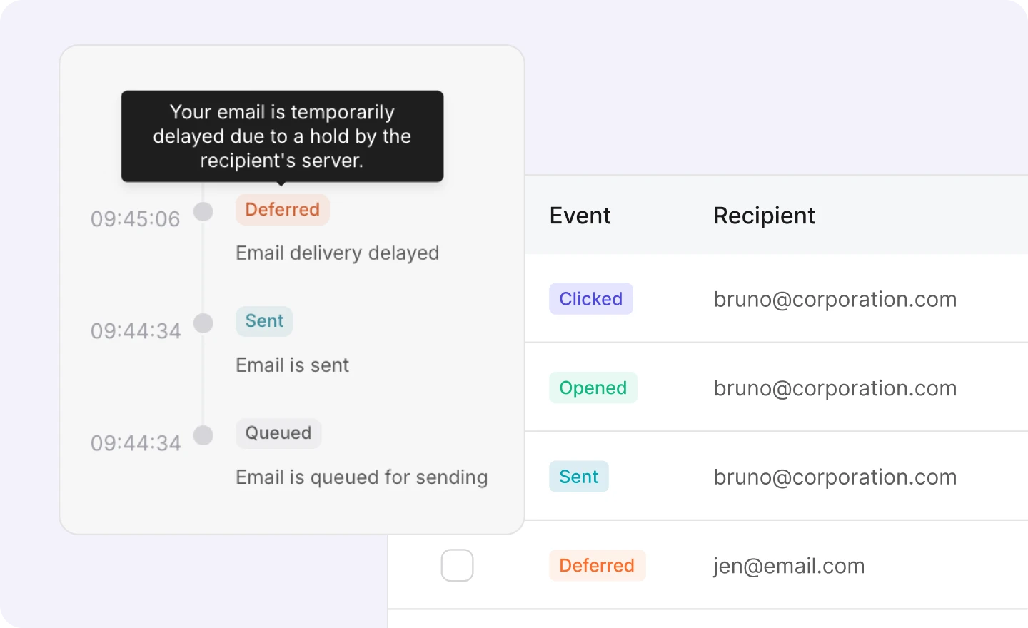 See the status of every single message you send, from the second it’s processed to the moment it’s opened. -