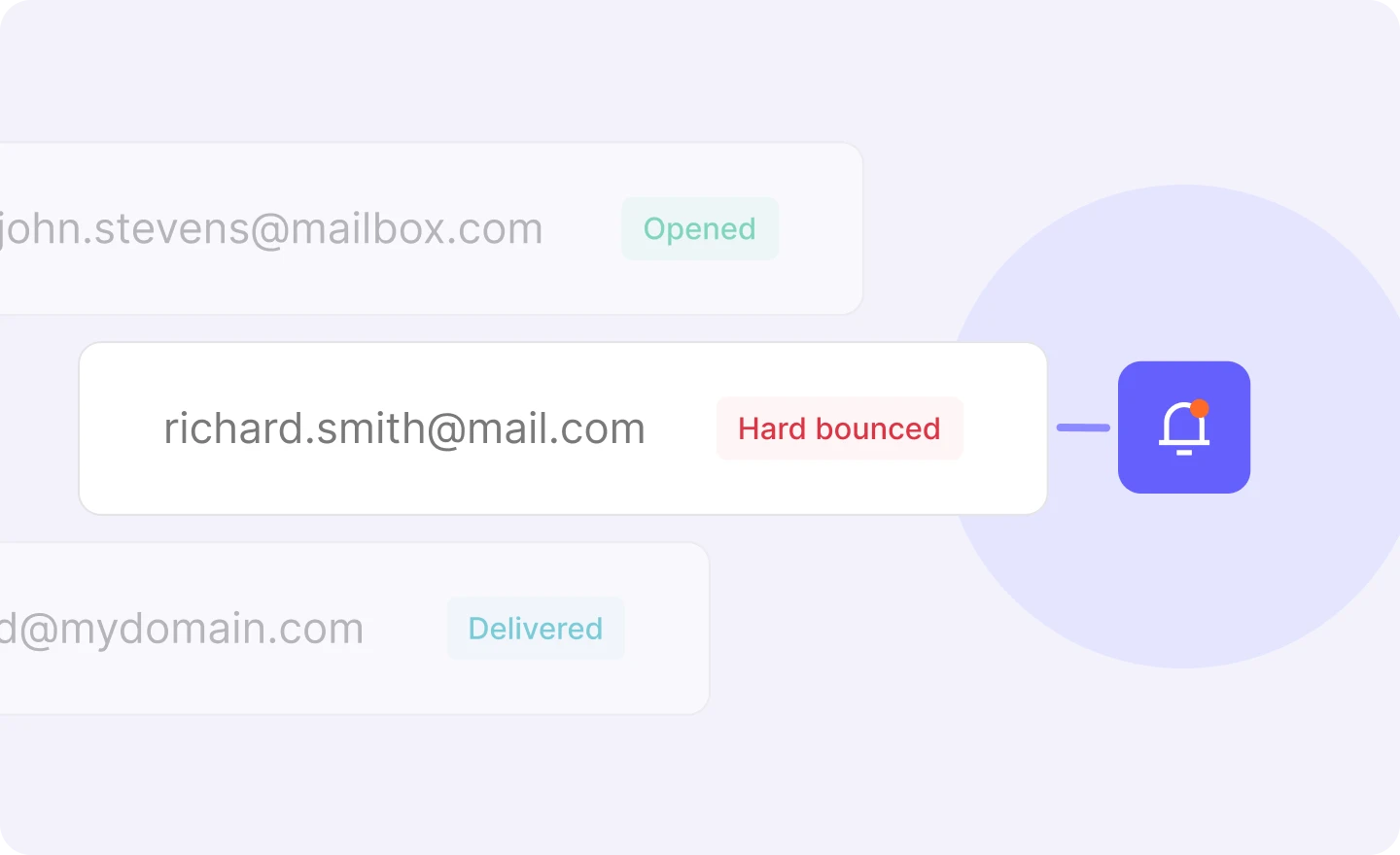 From queued to clicked, view the activity status of every email you send, and see the exact error messages for failed deliveries. -